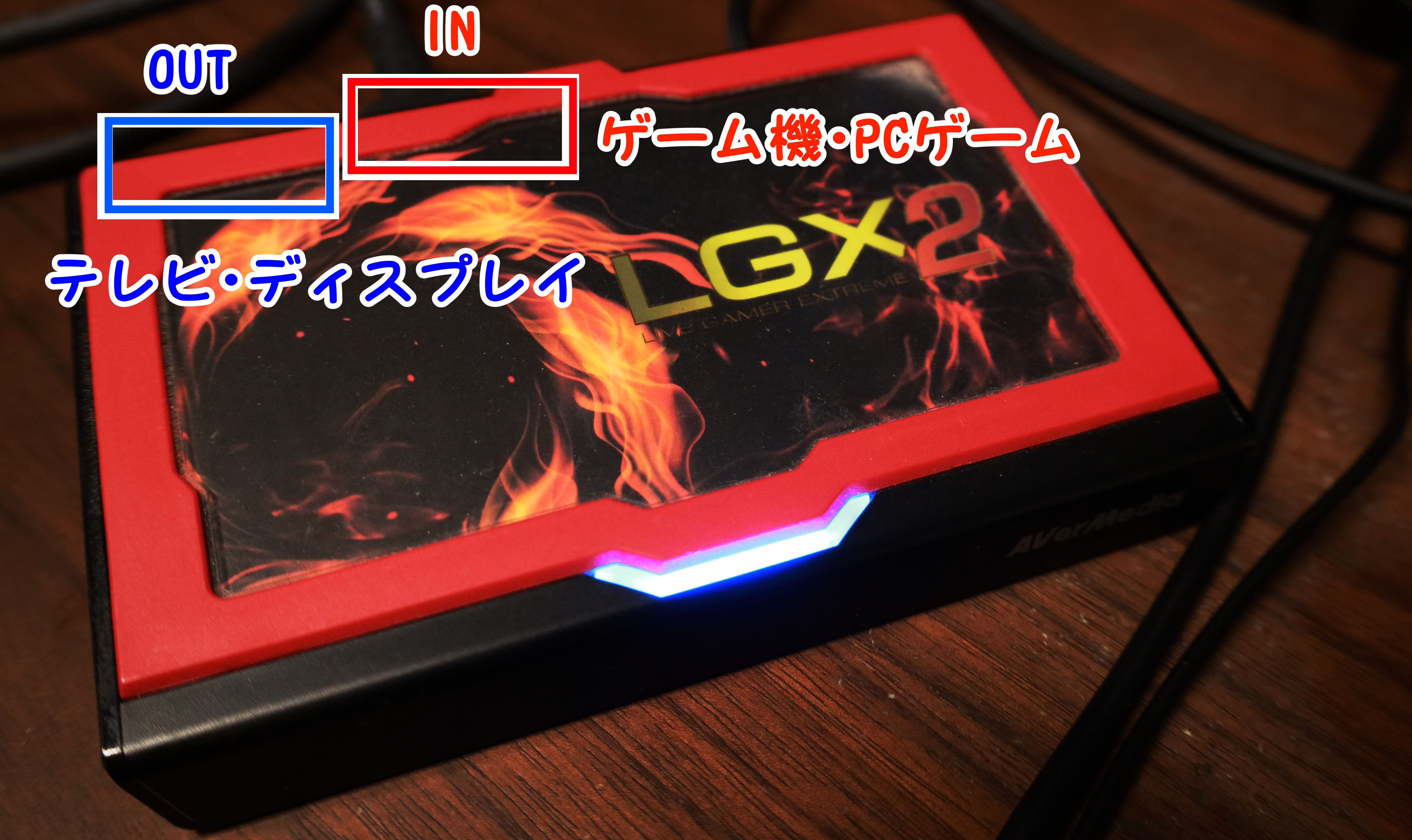 ※逆に挿しちゃ和内容に注意してね!INって書いてあるほうがゲーム機(PCゲームなども含む)・OUTがテレビ(ディスプレイなど)ね!