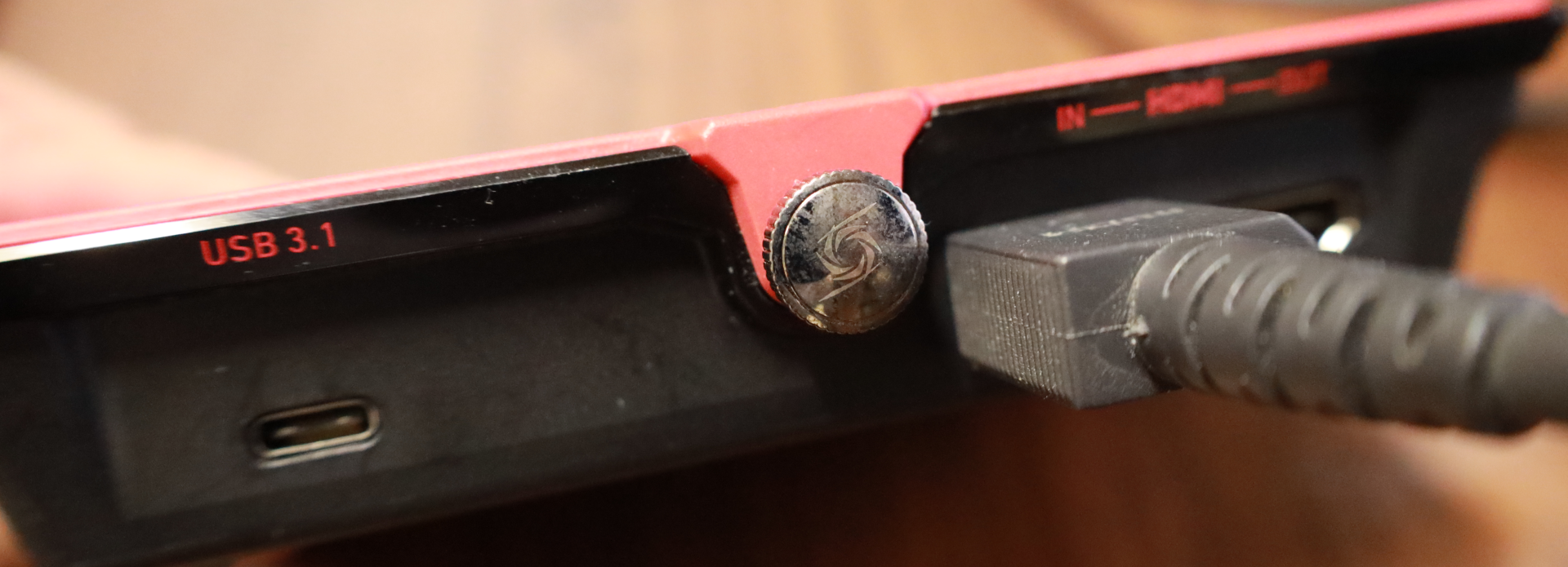 USB3.1とOUT側のHDMIは挿していないときに撮影してごめんなさいだけれども、IN側はこんな感じに差し込んで。